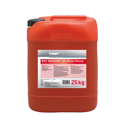 Benamin pH MINUS jest to bardzo aktywny, gotowy do użytku preparat stosowany do obniżania wartości pH wody basenowej. Preparat Benamin pH MINUS zawiera kwas siarkowy 37%.