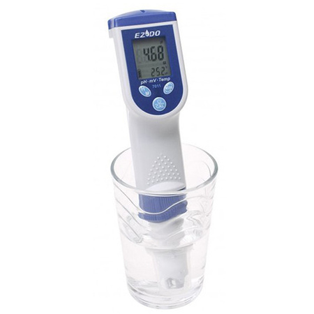 Podręczny, wodoszczelny miernik służący do pomiarów wartości pH/ORP i temperatury badanej cieczy. Charakteryzuje się wysokim zakresem pomiarowym (0,00...16,00pH, -1000...+1000 ) oraz rozdzielczością wskazań do setnych części. Wyniki pomiarów wyświetlane są na dwupolowym panelu LCD z dokładnością ±0.02pH. Umieszczenie wyświetlacza pod kątem 45° (rozwiązanie chronione patentem) ułatwia odczyt wskazań. Możliwość wymiany elektrody minimalizuje koszty eksploatacji urządzenia. Miernik posiada funkcję automatycznej, trójpunktowej kalibracji, którą można przeprowadzić za pomocą standardowych buforów (pH: 4,0 / 7,0 / 10,0), funkcję automatycznej kompensacji temperatury oraz funkcję HOLD umożliwiającą zamrożenie wyników na wyświetlaczu. Tester zasilany jest z dwóch baterii AAA . Posiada sygnalizacją niskiego napięcia zasilania. Miernik idealnie nadaje się jako przyrząd pomiarowy w szkolnych pracowniach chemicznych, laboratoriach fotograficznych, do badanie odczynu pH w akwariach, basenach, ogrodach, itd.