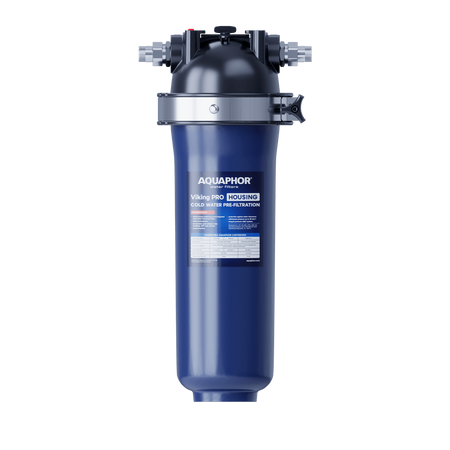 Wiking PRO to korpus filtra wstępnego do uzdatniania zimnej wody o wielu zastosowaniach, w tym do uzdatniania wody w całym domu, do użytku biurowego i HoReCa. Wykonany z wytrzymałego wzmocnionego tworzywa sztucznego, model PRO jest wyposażony w system odciążający, chroniący przed uderzeniem wodnym i wytrzymuje krótkotrwały skok ciśnienia do 30 atm.