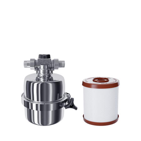 • Bardzo kompaktowy filtr wstępny, przeznaczony do głębokiego oczyszczania wody zimnej w całym domu lub do przygotowania do ostatecznej filtracji wody pitnej.