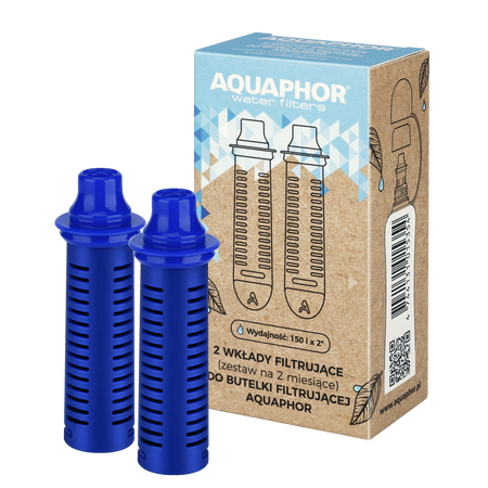 Zestaw dwóch wkładów filtrujących do butelki. Wkład służy do filtrowania wody wodociągowej przeznaczonej do spożycia. Filtruje wodę podczas picia. Dzięki specjalnemu materiałowi filtrującemu z jonowymiennym włóknem Aqualen, skutecznie usuwa z wody wszystkie podstawowe zanieczyszczenia, które mogą znajdować się w wodzie wodociągowej, takie jak: chlor, metale ciężkie, pestycydy, fenole i związki organiczne.